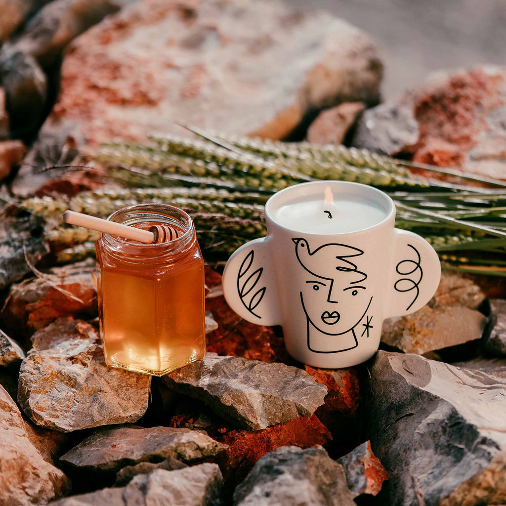 永遠の野の中心で、古の祭儀の残響が今なお囁く場所──天上の収穫がもたらす滋養のエッセンスが目覚める。デメテルへの供物のごとく、黄金の麦粒が蜂蜜の甘いネクターと乳のクリーミーさと溶け合う。 大地と神性とを結ぶ神秘的な絆である。